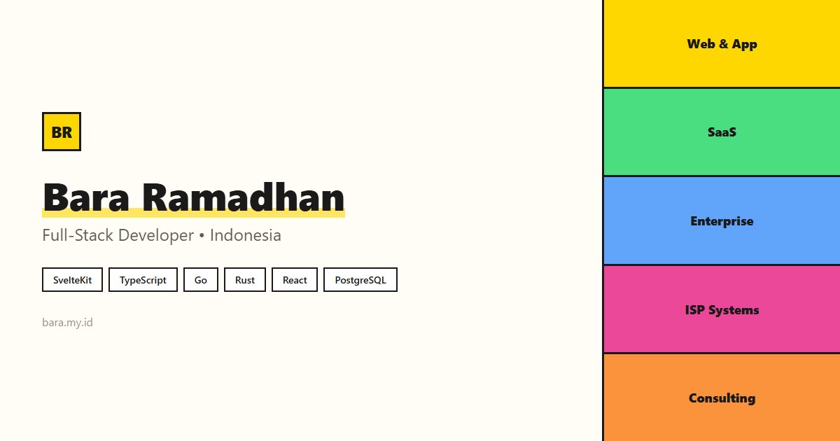 I'm a Full-Stack Developer from Indonesia with a passion for building web applications that solve real-world problems. I enjoy working across the entire stack, from crafting pixel-perfect UIs to designing robust backend systems.